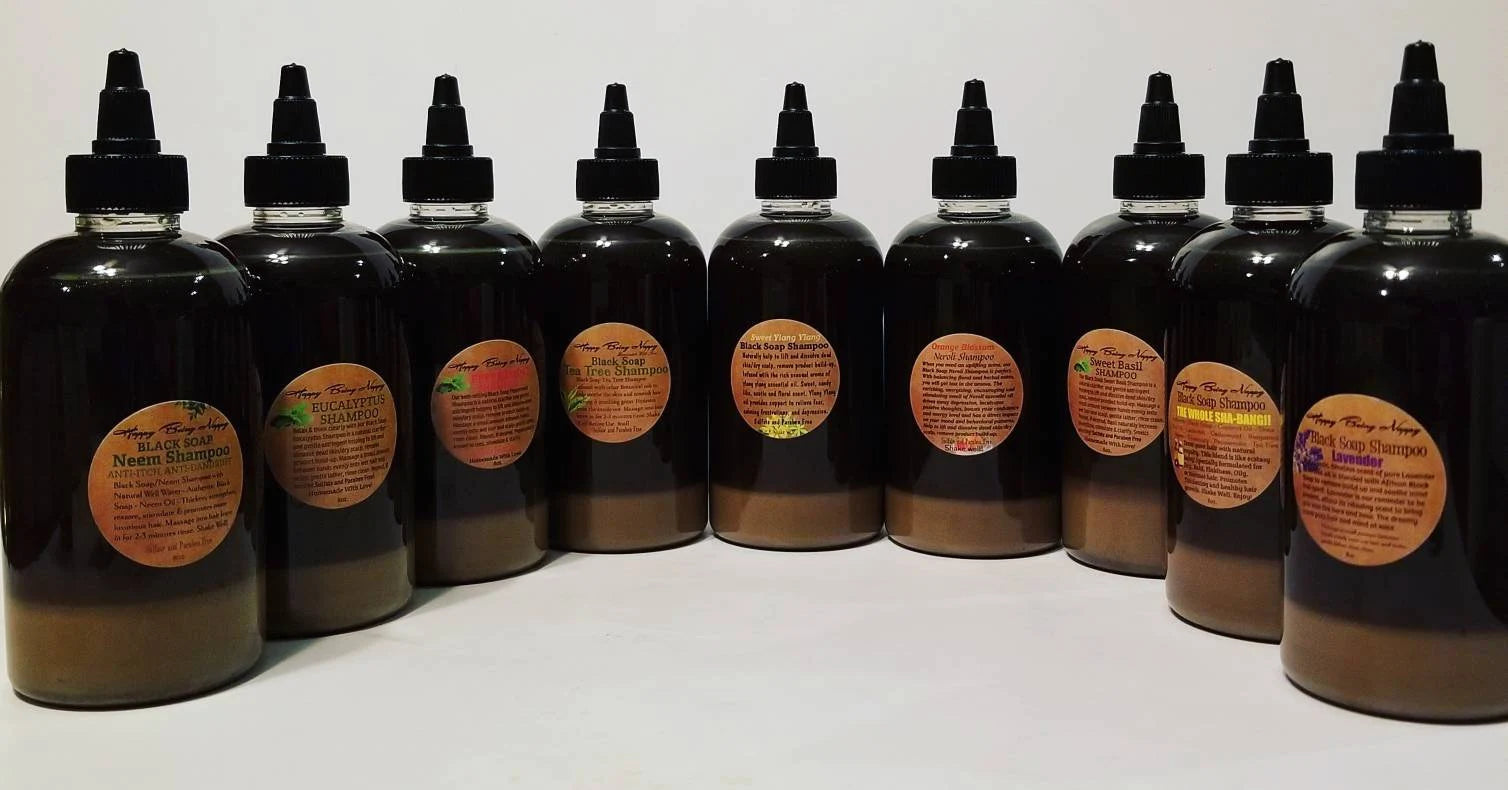 Increases Hair Growth. African black soap promotes hair growth by increasing the blood circulation of the scalp. As usual, what may work for one person may not work for another. Some people's hair do just fine using soap in lieu of shampoo but if soap doesn't work for you, try out a sulfate free shampoo. ***As with all essential oil products, please respect their wonderful power. If you are pregnant or nursing, have a seizure disorder, or will be using this on children under 10, please consult a doctor before using. If you have any allergies, please consult ingredients listed above. It is also always a good idea to do a small patch test of any new product before using. This product is not intended to diagnose, treat, cure or prevent any disease and has not been evaluated by the Food and Drug Administration.*** Please note that any shampoo is still a detergent that works to remove extra oil and dirt from your hair and scalp. To provide your scalp and hair with full support, consider using our pre-poos and conditioners for a complete hair growth system. Use them together for a nurturing self-care ritual. Comes in a 8oz. fl. BPA Free Bottle. Disclaimer: Happy Being Nappy LLC Products contains food products, herbs, flowers and essential oils, if you are allergic to these ingredients please discontinue. Please read all the labelled ingredients before use and always do a 48-hour skin patch test to test for possible allergies. Do a small section of hair test for 48 hours to test for possible allergies.