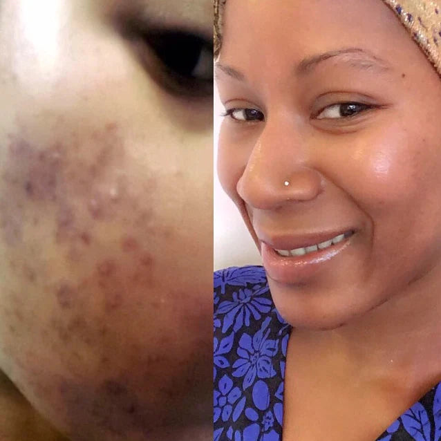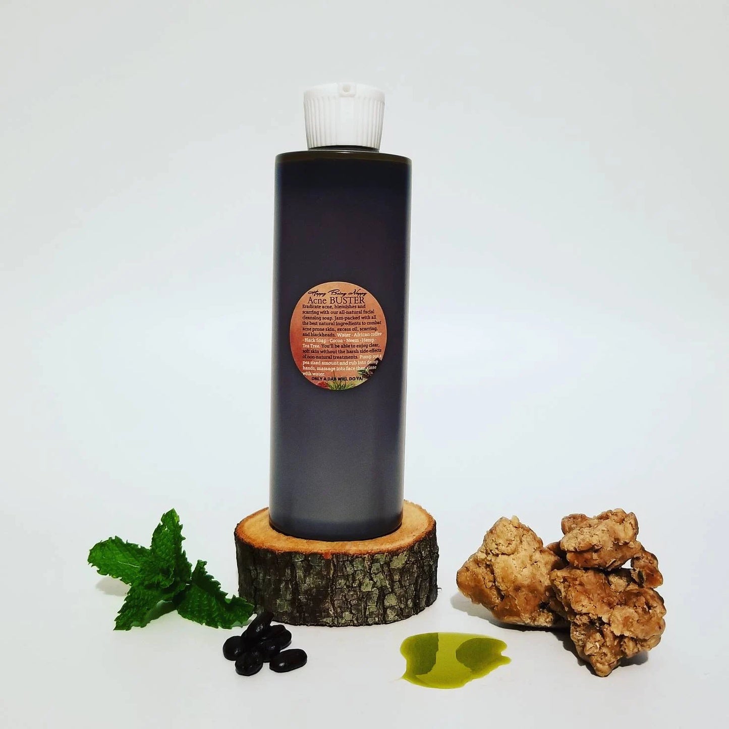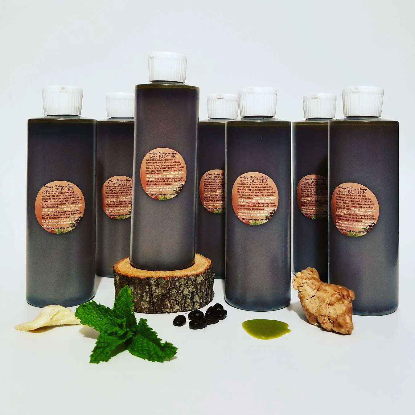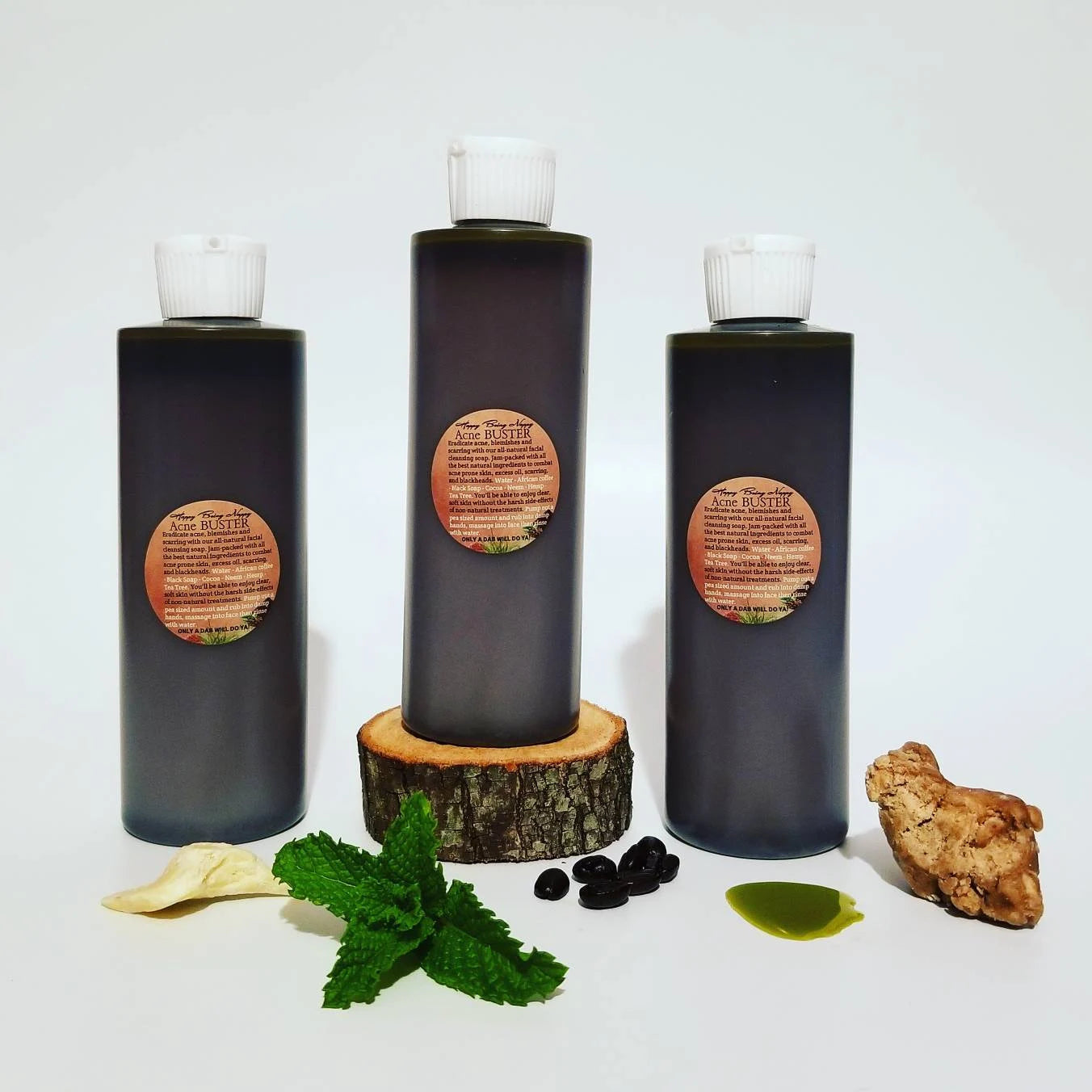 *** NOW COMES IN CLEAR 8OZ. BOSTON ROUND BOTTLE**** Eradicate acne, blemishes and scarring with our all-natural facial cleansing soap. Jam-packed with all the best natural ingredients to combat acne prone skin, excess oil, scarring, and blackheads. African coffee - African Black Soap - Cocoa pod ash - Neem - Tea Tree - and a hint of, Hemp Seed oil, Shea Nut oil and coconut oil. You'll be able to enjoy clear, soft skin without the harsh side-effects of non-natural treatments. Squeeze out a pea sized amount and run into damp hands. Massage into face then rinse with water. ONLY A DAB WILL DO YA! **My Story: The Spring of 2014 "All hell broke loose on my face; it was the worst acne you can image." Who would think they'll get acne in their mid-30's? I most certainly did not! I had tried nearly every possible remedy and treatment. I was already on a no meat and dairy free diet, so I focused on topical cleansers, natural antibiotics to try and cure my itchy and painful breakouts. My breakout caused from my 4c Power-Fro laying on both sides of my face. "I was my biggest fan, unapologetic Happy Being Nappy." After consulting a number of dermatologists, nothing conventional improved my condition. First of all, I don’t trust anyone! By this I mean doctors and dermatologists will tell you that diet doesn’t matter, natural remedies for acne don’t work, that it’s just hormones and there’s nothing you can do but take their prescriptions. But, that’s not true! What you eat matters! It so important to watch what you’re putting into your body. Avoid all processed foods, eat organic foods and make sure to get enough fats into your diet, such as avocados and coconut oil. Dairy can be a problem and this should be avoided, along with refined sugar. Get a blood test! Test your blood for vitamins and nutrients to make sure you aren’t deficient in anything. Here are a few main ones to make sure you include, vitamin A and zinc. Also, it may be a good idea to check your thyroid and your hormone levels (progesterone and testosterone). Also, allergens! Your acne may be a result of an allergy. Determine if there are any possible allergens that may be causing your acne, such as gluten, which may reduce the amount of nutrients absorbed. Other common allergens are dairy, yeast and eggs. Delayed food allergies may affect you especially if you have a leaky gut. After 36 hours of research and experimenting, I knew i need a powerful natural formula. I develop my very own DIY Acne & Blemishes Coffee exfoliator-Cleanser. A concoction of *African Black Soap witch has amazing benefits, but will dry-out your skin, so knew I needed to add a moisturizer. Coconut Oil is naturally antibacterial, antifungal, and moisturizing, it will keep the bacteria that causes acne in check. I swear by it! I added Cocoa Pod ash for its rich antioxidants that fight harmful free radicals and can help to prevent premature aging and also contain anti-inflammatory properties that soothe eczema & other inflammatory skin conditions. Another acne BUSTER is the all mighty NEEM! *Neem hampers bacterial growth and being a natural anti-inflammatory, it helps to reduce redness and swelling. Vitamin E in neem helps heal damaged skin, reducing acne related scarring. Enriched with minerals and vitamins like Vitamin C, magnesium and omega 6 fatty acids, cacao promotes blood flow and increase cellular healing to develop a youthful glow and may help to tone the skin. African coffee works to exfoliate your skin, keeping it smooth, purified and clear. Last but not lease, Tea Tree Essential Oil! Tea tree has antibacterial qualities that deeply clear away acne-causing bacteria. Tea tree oil is also soothing to the skin and provides cooling relief to oily, irritated skin. I used 100% Cold Pressed Hemp Seed Oil & Frankincense essential oil (mixed) after each cleanse for a soothing healing moisturizer. I now use Organic Turmeric Root & Coconut Oil or my Hemp & Frank for a moisturizer. Both moisturizers is healing for acne prone skin. Within three days, I had no new breakouts! It was just a matter of healing up the scars. After six weeks of meditating & sticking to my creation, "It was a miracle, it was the first concoction that actually worked. I think i cried of happiness." After two months of consistently using the cleanser, my skin was completely clear. Although not completely spot free. After about 1 year my acne was eventually cured. My skin glowed, it was smooth, and I didn’t have a single spot, not even a black head on my face. I was finally back to being my beautiful old self." I get hives every now and then due to the amount of sunbathing and farming I do. That's expected and acceptable! It's called organic living!
